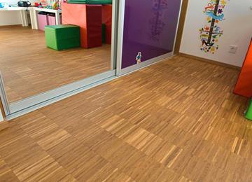 Le parquet industriel est réputé robuste et peu sensible aux contraintes, ce qui en fait une alternative abordable dans les lieux publics, comme les écoles, les crèches et les surfaces commerciales.