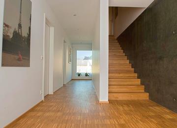 Les lamelles sont collées en plein et la surface du bois est toujours traitée sur place avec une huile écologique, une cire dure ou un vernis.